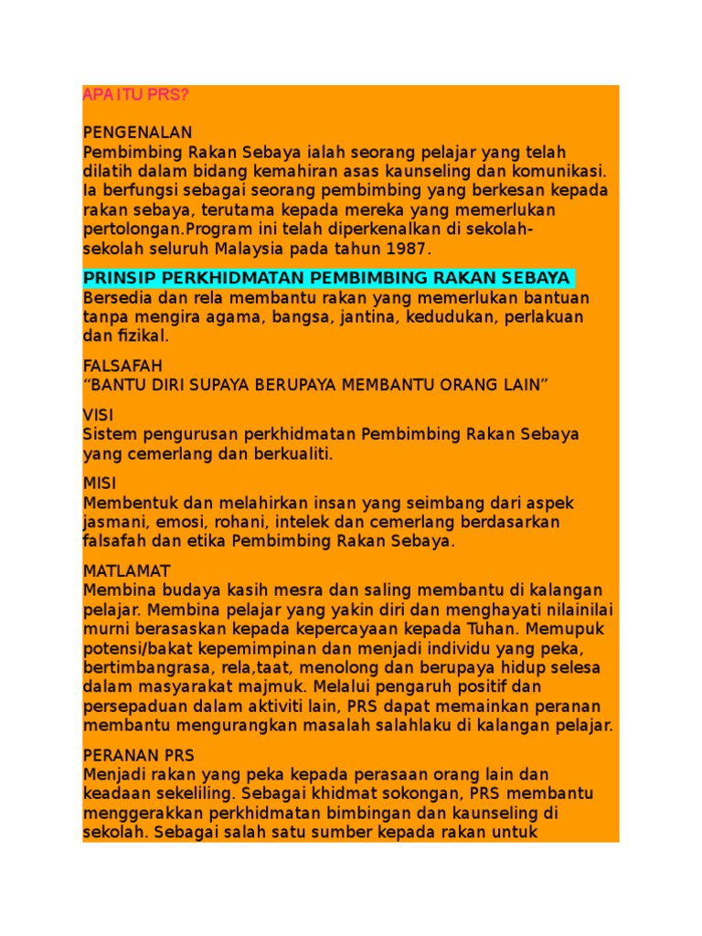Pembimbing Rakan Sebaya Apa Itu Prs